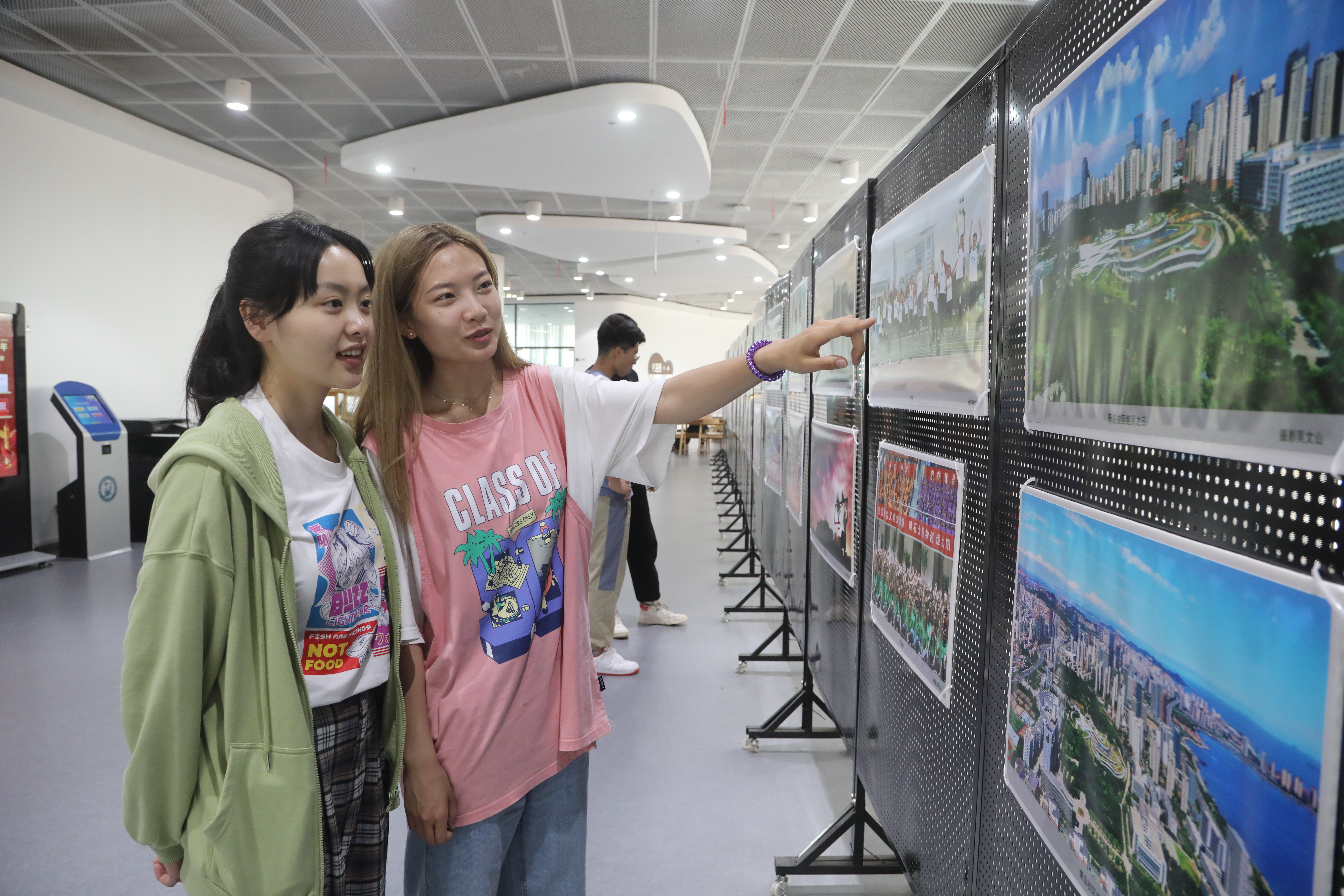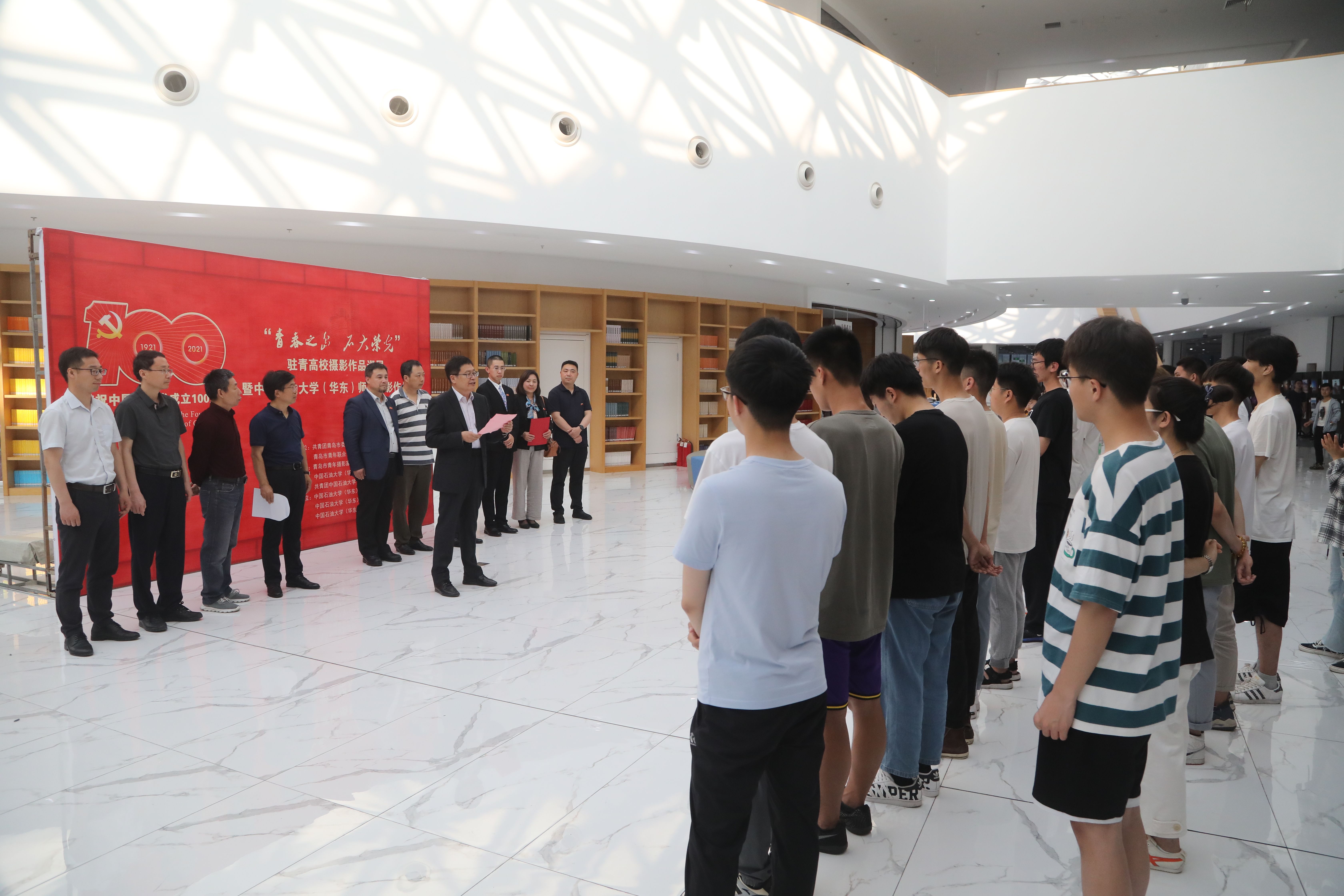 师生观看庆祝中国共产党成立100周年“青春之岛 taptap点点在线登录荣光”驻青高校摄影作品巡展暨中国石油大学(华东)师生摄影作品展