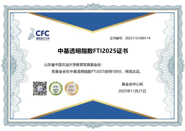 近日,基金会中心网发布了中基透明指数FTI2025观测结果,中国石油大学教育发展基金会再获满分(100分),已连续九年并列全国非公募基金会第一名。初心未改,我们始终铭记这份信任,用九年的满分答卷,回报每一份长情托付。