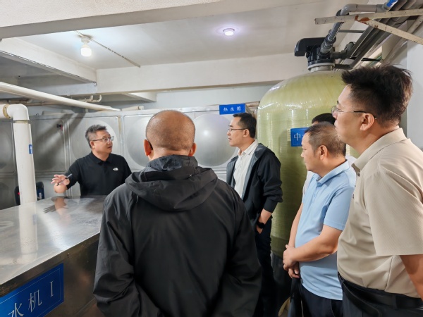 座谈会后,段翔一行参观学校安消防指挥中心和后勤服务大厅。在后勤服务大厅,双方现场观摩了学校暖通空调远程控制平台、报修平台及绿色校园信息系统的汇报演示,围绕绿色低碳校园建设与智慧后勤创新应用两大议题展开深入交流探讨,并实地考察了学生公寓洗浴系统废水余热回收设备机房与校园绿地等,现场了解学校在节能技术应用与校园生态建设方面的实践成果。