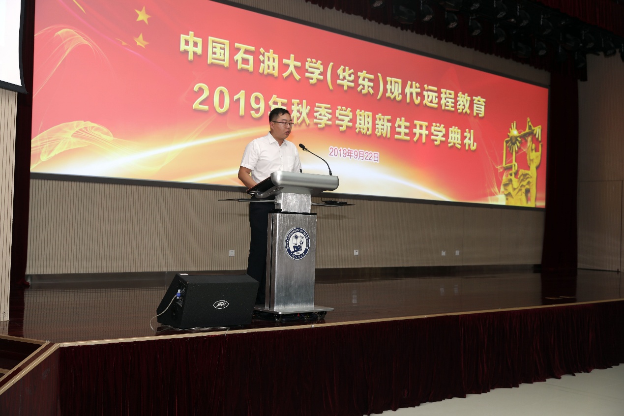 教育发展中心主任、远程教育学院院长韩红江出席开学典礼并讲话。典礼由教育发展中心党委书记马国刚主持。