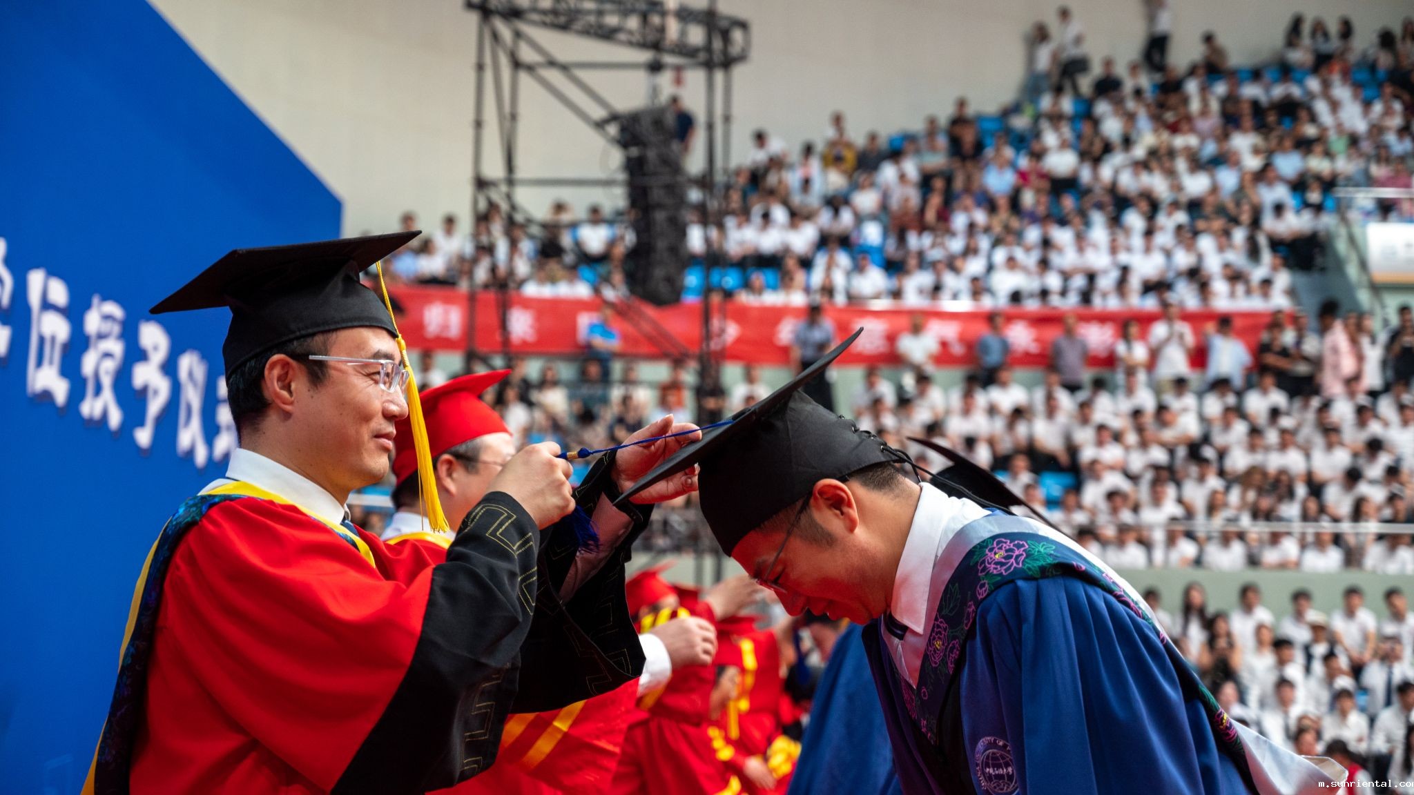 【本站讯】6月22日,学校2025年毕业典礼暨学位授予仪式在体育馆隆重举行。2025届全体毕业生、家长代表,党委书记吴强明、校长郝芳院士等校领导,各教学院(部)和相关部门负责人、导师代表等参加毕业典礼暨学位授予仪式。副校长周鹏主持典礼和仪式。