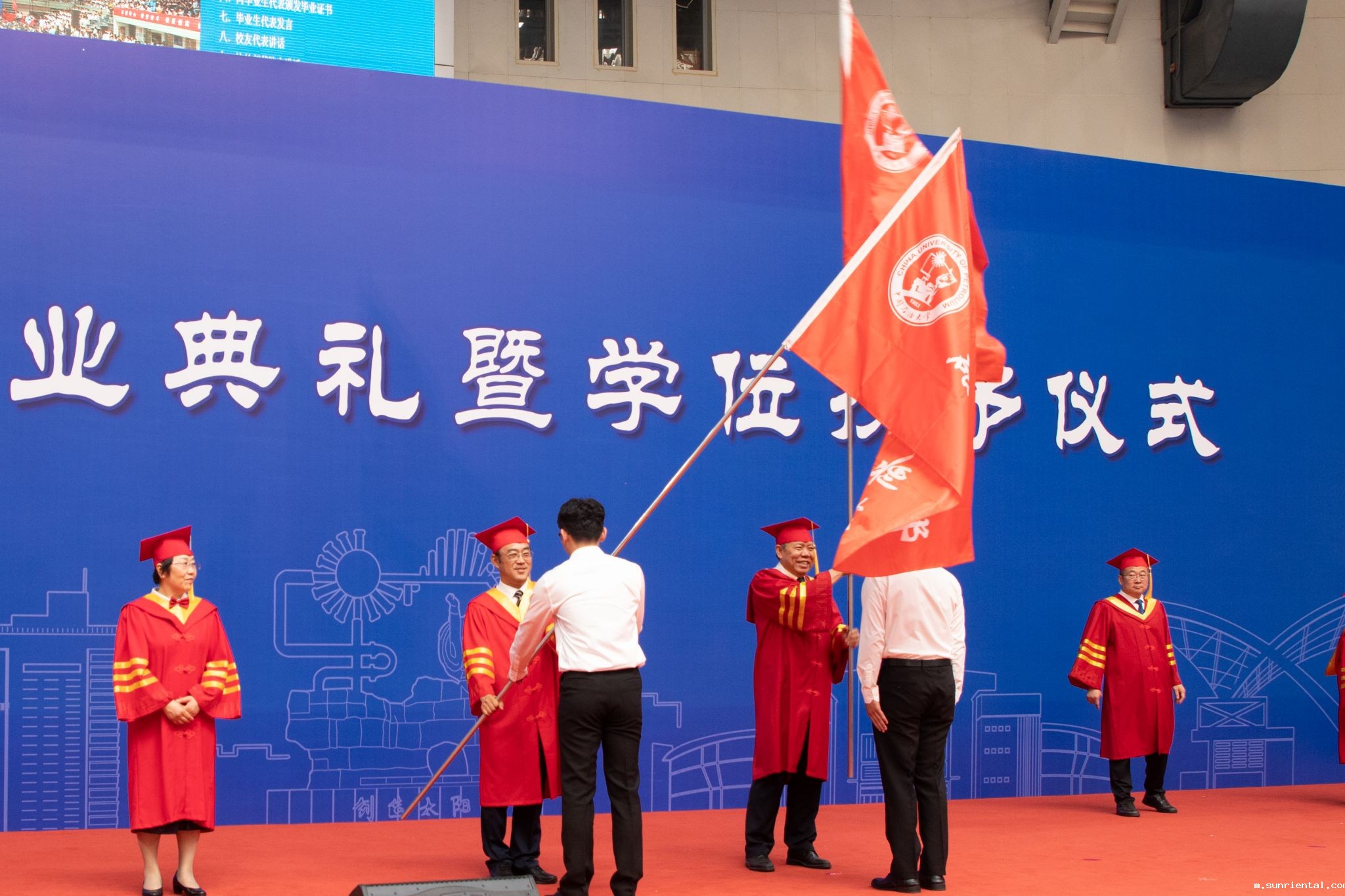 校领导、导师代表为获得博士、硕士、学士学位的毕业生代表授予学位,为赴西部基层就业的毕业生代表佩戴绶带。党委书记吴强明、校长郝芳院士为即将前往西部就业、基层就业、能源行业就业及其他重点领域就业的毕业生代表授出征旗。