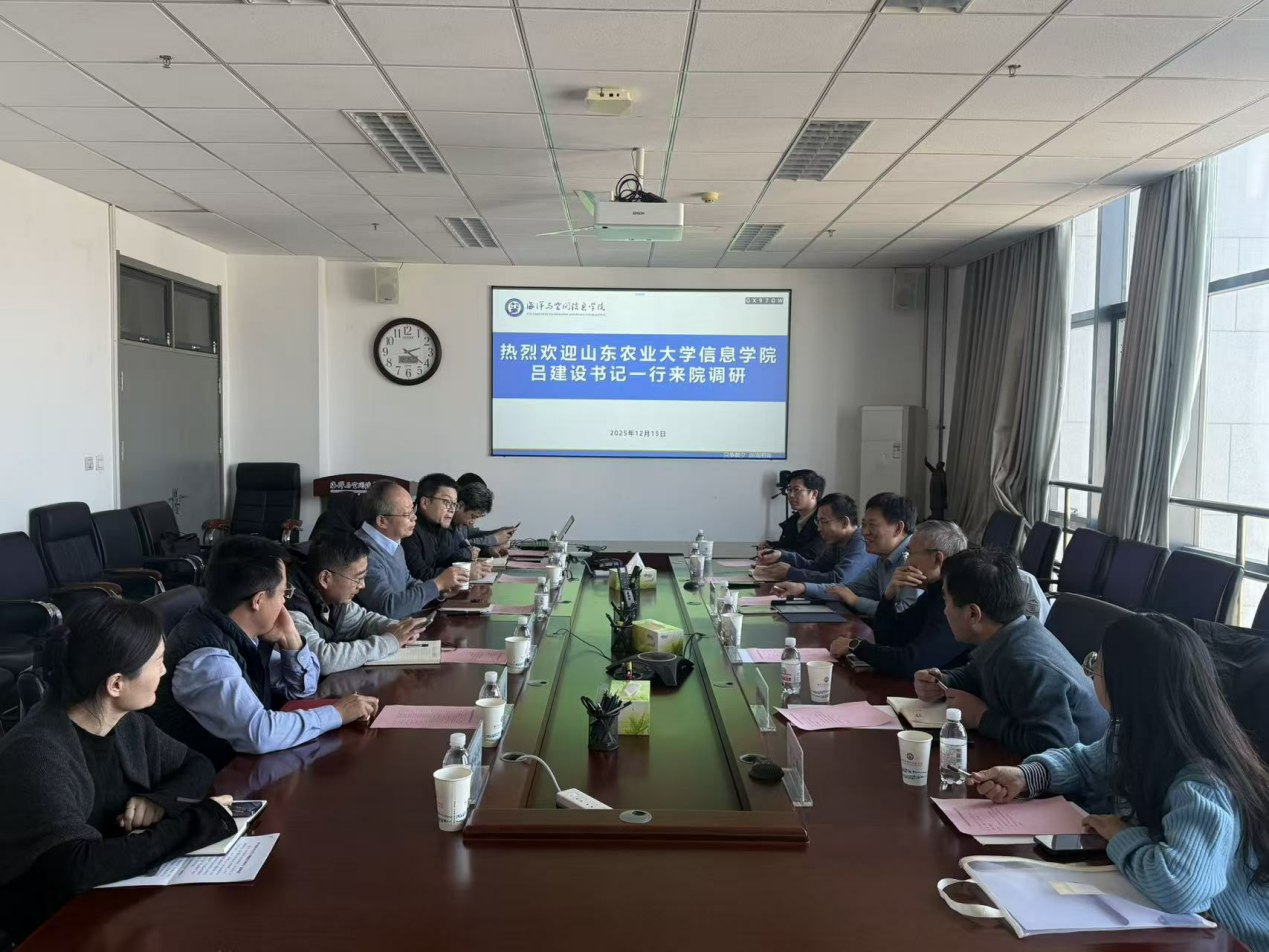 12 月 15 日,山东农业大学信息科学与工程学院党委书记吕建设一行 6 人来访交流。我院党委书记梁昌国、副院长李世宝,以及相关教学系系主任、学院团委书记参加座谈会。座谈会由梁昌国主持。