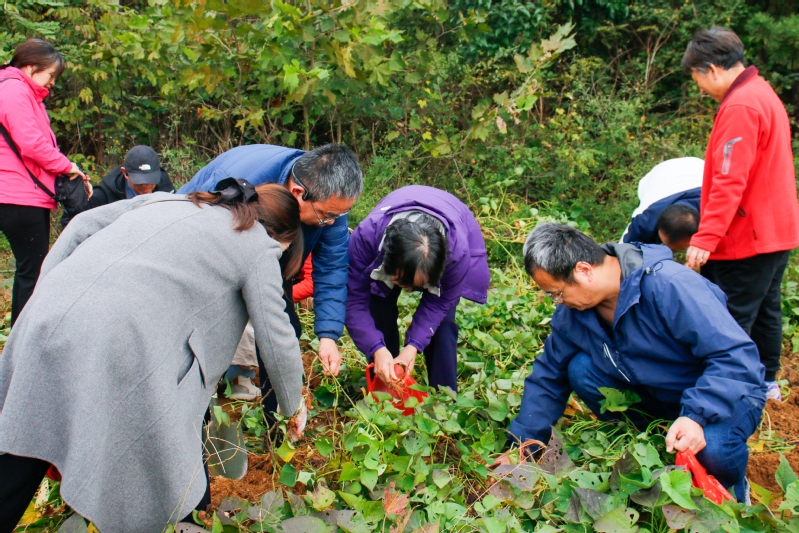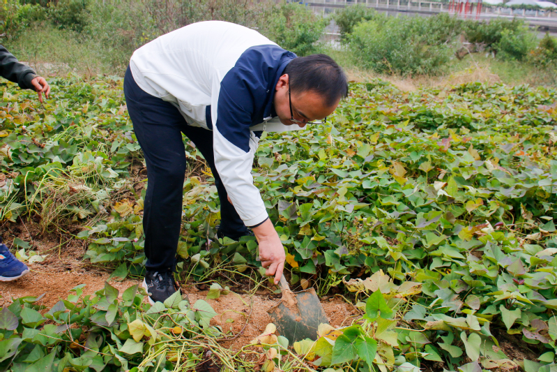 午后,活动进入秋日丰收体验环节。在采摘园内,老师们亲手摘取苹果、葡萄,刨挖地瓜,在愉快的劳动中体验农事的艰辛与收获的喜悦。这一过程让老师们更加深刻地理解了“半丝半缕,恒念物力维艰”的内涵,有助于引导大家进一步崇尚劳动、尊重劳动、珍惜物资。