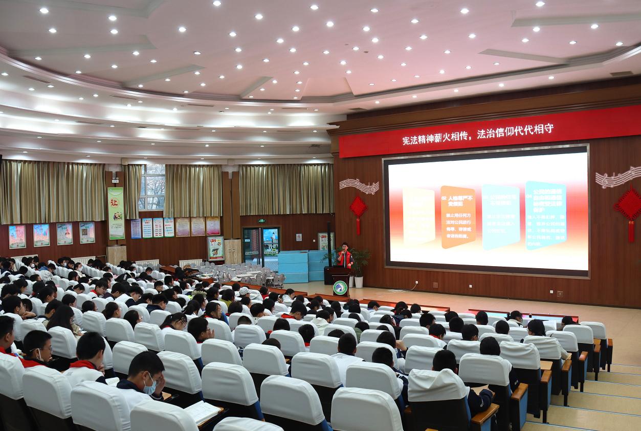 12月5日下午,宣讲团走进西海岸新区实验初级中学,结合宪法发展脉络和宣誓制度视频,强化学生对宪法权威的认同;此外,宣讲团还联合研究生支教团贵州关岭分队、甘肃静宁分队,于12月2日至3日为西和县北川初级中学、科左后旗甘旗卡第四初级中学的学生开展线上宪法宣传,让法治种子在青少年心中生根发芽。