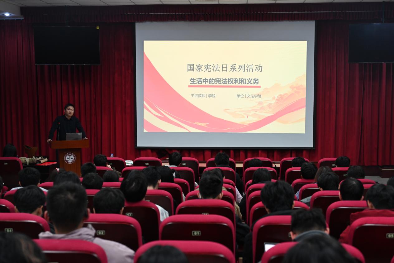 12月6日晚,“生活中的宪法权利与义务”主题讲座于文理楼142顺利举办,本次讲座由文法学院法学系主任助理李猛博士主讲,吸引了各学院学生的积极参与。讲座以国家宪法日设立为切入点,强调宪法根本大法的最高法律效力及贯穿公民生活的重要性,围绕宪法与日常生活的关联,结合多类现实案例,系统讲解宪法通过部门法落地的路径,重点分析多个热点权利议题,阐释相关法律理念并明确公民权利边界与责任,强调大学生既是法律学习者也是法治建设参与者,此次讲座有效提升了学生依法维权与履行义务的意识。
