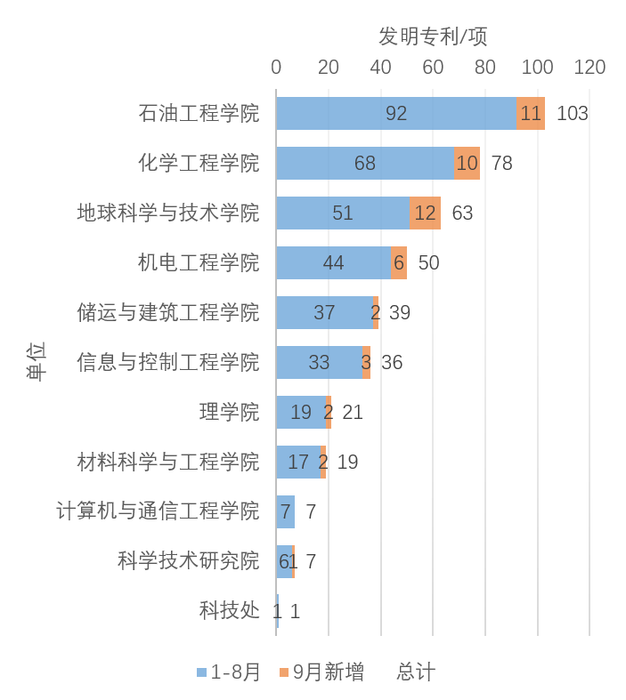 我校2018年1-9月各单位授权发明专利数如图2所示。