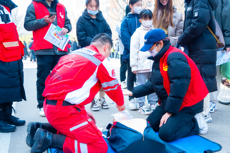 青岛西海岸新区方舟红十字救援队进行急救演练 李可程摄
