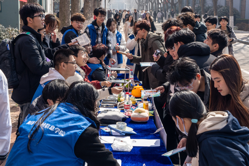众多校外公益组织在今年也开始进校“摆摊”,“青年志愿者招募、非遗项目“黄岛剪纸”现场体验、爱心献血、助老关爱活动讲解、应急救护宣传等摊位吸引着学子驻足参与。在献血车前全校200余名师生们自觉排起了一条条长队,等待献血的前期准备工作,一双双有力的手伸向医护人员,流出饱含青春激情的热血。“献血,我带头!万事开头难,第一次献血内心确实激动和紧张,但没想到过程是轻松的。”石油工程学院2020级本科生韩磊说。